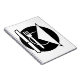 Dieser Entwurf ist ein Gedeck. Das Gedeck ist an einem Tisch und ist Schwarzweiss. Dieser Gedeckentwurf schaut auf diesem gewundenen Notizbuch groß