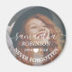 Gewohnter Gedenkmagnet für Beerdigung mit einem Foto der Person, die sich daran erinnert, ihren Namen, ihr Geburtsdatum und ihr Todesdatum, ein süß weißes Herz und die Worte "nie vergessen".