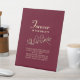 Elegantes, modernes minimalistisches Gold und rotes bordeauxfarbenes Tafelschild für Hochzeiten mit einzigartigem handgezeichneten Paar lieben Vögel und Kalligraphie-Schrift.