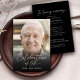 Dies ist eine klassische Feier des Lebens Einladung, um das Leben Ihrer Lieben zu ehren. Das Design verwendet ein einfaches Foto und ein modernes Kalligraphieskript. Diese Einladung kann leicht mit Ihrem eigenen Foto und Text personalisiert werden, um eine besondere Hommage für die Beerdigung, Gedenkfeier oder Feier des Lebens Ihrer Lieben mit der bereitgestellten Vorlage zu schaffen. Bitte kontaktieren Sie den Designer, wenn Sie Fragen zu diesem Design oder zu passenden Produkten haben.