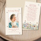 Dies ist eine moderne und skurrile Gedenkkarte für Gebet. Das Design besticht durch einen wunderschönen kalligraphischen Schriftart und hübsche Wildblumen in Pastellrosa, lila, blau, gelb, Rost- oder Terrakotta sowie zarte Schmetterlinge. Diese Beerdigungskarte kann leicht mit Ihrem eigenen Foto personalisiert werden, um eine besondere Hommage für Ihren Liebsten zu erschaffen, indem Sie die beiliegende Vorlage verwenden. Bitte kontaktieren Sie den Designer, wenn Sie Fragen zu diesem Design oder zu passenden Produkten haben.