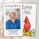 Aquarellfarbener Kardinal und Sonnenblumen mit Eukalyptus-Beileid Beerdigungskarten. Diese moderne und elegante Gedenkkarte mit einem roten Kardinal in einem Blumenstrauß. Front "In Loving Memory" Personalisieren Sie diese Gedenkkarten für das Beerdigungsgebet mit Ihren Lieben Foto, Name & Daten und Stimmung. Zurück ~ 'Kardinäle erscheinen, wenn Engel nahe sind' Gedicht. Diese Gedenkbetkarte wird ein wertvoller Pfarrer für Beerdigungsdienste und die Feier von Lebensveranstaltungen sein. COPYRIGHT © 2020 Judy Burrows, Black Dog Art - Alle Rechte vorbehalten. Gedenkkarte Kardinal Beerdigung mit Foto