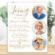 Ehre deine Lieben an deinem Hochzeitstag mit einem personalisierten Gedenkzeichen. Dieses moderne Traudenkmal ist das perfekte Tischschild oder rette ein Sitzschild, um Ihre Lieben zu ehren. Zitat " In liebevoller Erinnerung ... Wir sind im Himmel für deine Hochzeit, also was sollen wir tun? Wir kommen runter, um es mit dir auszugeben. Rett uns einen Platz, nur einen bequemen Stuhl, vielleicht sehen Sie uns nicht, aber wir werden dort sein." Wir hoffen, dass Ihre Gedenktafel Ihnen Frieden, Freude und glückliche Erinnerungen bringen wird. Passen Sie mit den beliebtesten 3 geliebten Fotos, und Namen an. Wunderbare Hommage an Großeltern, Tanten Onkel, Schwestern und Sie können Haustiere oder einen geliebten Hund einschließen. Eine Feier des Lebens. COPYRIGHT © 2020 Judy Burrows, Black Dog Art - Alle Rechte vorbehalten. Gedenkveranstaltung Gold 3 Foto in Love Memory Poster