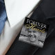 Eleganter Gedenkknopf mit einem Bild Ihres verlorenen Liebsten, dem Text "ewig in unseren Herzen" und ihrem Namen.