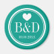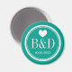 Mit Monogramm Hochzeitsfeier für Magnete. Rundform mit Herz und personalisierten Monogrammnamen Anfangsbuchstaben. Aqua / Aquamarine türkis blau / Meer grün und weiß Farben. Niedlich personalisiert Dankeschön an die Gäste. Enthält das Datum der Ehe. Auch schön wie Save the Date Erinnerung.