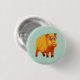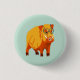 Funny Schweineknopf mit einer Abbildung eines digital bemalten Wildschweins mit großen Stoßzähnen und herzförmigen Brillen in hellgelben, orangefarbenen und blauen Farben.