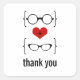 Quirky und schicke Geeky Brille Wedding Dankeschön Sie Aufkleber mit einem roten Herz flankiert von zwei Paaren von geeky Brillen, ein männliches Paar und ein mädchenhaftes Paar, das den Bräutigam und die Braut darstellt. Diese ungeschickten aber raffinierten Dankeschön-Sticker sind perfekt für Ihre nerdige Hochzeit! Einfach zu anpassen, fügen Sie einfach den personalisierten Text Ihrer Wahl. Klicken Sie auf den Button "Anpassen", um weitere Personalisierungsoptionen zu finden.