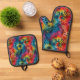 Gefärbte Krawatte Retro farbenfroh Ofenhandschuh & Topflappen-Set