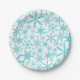 Gefrorener Schneeflocke-Muster-Feiertags-Papier-Teller-Feiertags-Papier-Teller durch Orabella Drucke. Aquaschneeflocken auf einem weißen Hintergrund.
