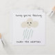 Diese niedliche Karte ist der perfekte Weg, um jemandem eine schnelle Erholung zu wünschen. Das Design enthält eine traurige kleine Regenwolke und eine lustige Typografie-Formulierung, die lautet "sorry you are under the weather". Die Kartenrückseite ist leer, damit Sie eine persönliche Nachricht schreiben können, oder Sie können mehr typisierte Formulierungen oder ein Foto Ihrer Wahl hinzufügen, indem Sie auf die Schaltfläche Bearbeiten klicken.