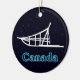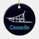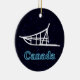 Eine schlichte weiße Silhouette eines Hundes schlug auf einem sternenförmigen Hintergrund. Text mit "Kanada" erscheint in leuchtendem Blau.