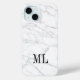 Gehäuse aus weißem Marmor Case-Mate Apple iPhone 15. Personalisieren Sie Ihre individuelle Name-Initialen.