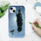 Original digitale Kunst, Form mit einem Rabe und einem Fragezeichen, auf blau. Stil: Case-Mate Tough Apple iPhone 15 Fall
