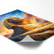 Das Gemälde der Sphinx bezeugt die rätselhafte und majestätische Präsenz dieses ikonischen Denkmals. Die Sphinx, mit dem Körper eines Löwen und dem Kopf eines Menschen, wird in einer sich ausbreitenden Wüstenlandschaft dargestellt, deren Kalksteinelemente mit feinen Details dargestellt sind. Die Sonne strahlt ein warmes Licht über ihre uralte Form und hebt die Texturen ihres verwitterten Steins hervor. Um die Sphinx herum rollen Dünen und ein tiefblauer Himmel, schaffen ein Gefühl von Zeitlosigkeit und Geheimnis. Dieses Kunstwerk ruft Gefühle von Ehrfurcht und Neugier hervor und lädt die Zuschauer dazu ein, über die Geheimnisse und die Geschichte der Sphinx nachzudenken, die als Wächter des reichen Erbes des alten Ägypten stehend sind.