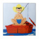 Künstler: Beth Henninger Krush | Junge sitzt im Boot und fischt