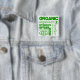 Zeigen Sie Ihre Unterstützung für Bio Prozesse und Waren mit diesem mehrsprachigen Knopf, der globales Bewusstsein der Bio Klimafragen ausdrückt.