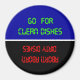 Ideal für die Techie mit Geschirrspüler. Die blaue Seite hat grünen Text (für Go), der lautet: "Go For Clean Geschirrs". Die schwarze Seite hat roten Text (für Stopp), der lautet: "Abort! Abbrechen! Schmutzige Geschirr".