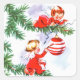 Charmante Weihnachtsaufkleber mit zwei niedlichen Engeln, die den Weihnachtsbaum schmücken.
