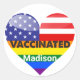 "Geimpftes" Herz mit einzigartiger Kombination aus amerikanischer Flagge und Pride Fahne. Gelassen Menschen wissen, dass Sie an öffentlichen Orten oder wohin auch immer vollständig geimpft wurden.