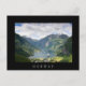 Carte postale du fameux fjord Geirangerfjord, paquebot de croisière et village de Geiranger entre les montagnes de Norvège avec une frontière noire et le texte : "Norvège".