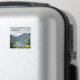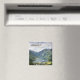 Photo souvenir carré aimant du célèbre fjord Geirangerfjord, un paquebot de croisière et le village de Geiranger entre les montagnes en Norvège avec le texte : 'NORWAY, Geirangerfjord'.