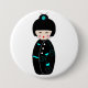 Dieses ist ein reizender Entwurf eines Geishamädchens aber in einer Cartoonart getan. Das erkennbare Geishamädchen wird alle im Schwarzen gekleidet und ist dort mit einem netten Ausdruck auf ihrem Gesicht stehend. Dieser Geisha-Cartoonentwurf schaut auf diesem Knopf groß. Vervollkommnen Sie für selbst oder als Geschenk