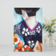 mit originellem Kunstdesign aus Aquarellmalerei von japanischem Geisha in dunkelblau, detailliert orange Kimono mit himmelblauem Hintergrund. Die schöne, farbenfrohe und orientalisch-asiatische Malerei stammt aus der japanischen Kyōto-Region. Sie ist inspiriert von orientalischen und asiatischen Kunstwerken.