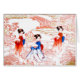 Vintage japanische bunte Porzellanmalerei mit Geishas und schöner Garten gestalten die Einbeziehung der Blumen und der Brücken landschaftlich. Fotografie.