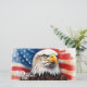 Am Tag der Unabhängigkeit der USA erhebt sich der Glatzenadler - ein Symbol für Freiheit und Stärke - vor der winzigen Flagge der Staaten. Sein durchdringender Blick und die fett rot, weiß und blau im Hintergrund sind Mut, Entschlossenheit und die historischen Werte, die am 4. Juli gefeiert wurden. Dieses Bild verkörpert den Stolz einer Nation, die für ihre Unabhängigkeit steht.