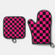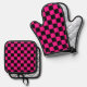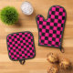 Gekreuzte Quadrate heißen rosa schwarzen geometrischen Retro Oven Mitt & Pot Holder Set. Cooles geometrisches rechteckiges Muster in Retro. Vintage Fliesen schwarz und heiß rosa modernes Schachbrett.