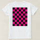 Gekreuzte Quadrate Schwarz und Heiß-Rosa geometrisches Retromuster Shirt. Frauen Kleidungsgeschenk für sie. Cooles geometrisches rechteckiges Muster in Retro. Vintage Fliesen Schwarz und heiß rosa modernes Schachbrett.