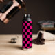 Checkered Quadrate heißen rosa schwarzen geometrischen Retro-Muster Wasser Flasche Geschenk für sie. Cooles geometrisches rechteckiges Muster in Retro. Vintage Fliesen schwarz und heiß rosa modernes Schachbrett.