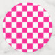 Checkered Quadrate heißen rosa, weißen geometrischen Retro-Muster Confetti. Party versorgt Décor zum Geburtstag. Cooles geometrisches rechteckiges Muster in Retro. Vintage Fliesen weiß und heiß rosa modernes Schachbrett.