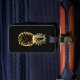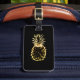 Eine gekritzelte goldene Kontur einer Ananas glüht gegen einen schwarzen Hintergrund.