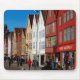 Niedliche, gekrümmte hölzerne Häuser von Bryggen in Bergen (Norwegen) nahmen auf einer bunten Fotografie gefangen. In der Vergangenheit voll beschäftigte Kaufmannsgeschäfte und -wohnungen, jetzt vibrierend mit Kneipen, Restaurants und Nachtleben. Teil des UNESCO-Erbes. Dieses Produkt ist völlig kundengerecht.
