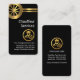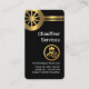 Ein komplett schwarzes Cover ist mit einem goldenen Reifenwagen ausgestattet. Darunter befindet sich der Firmenname "Chauffeur Services", den Sie neben dem Logo des Goldchauffeers ändern können. Danach kommt Ihr Name und die Kontaktdaten. Oben auf der Rückseite befindet sich das goldene Logo, gefolgt von Ihrem angesehenen Namen, den Kontaktdaten und einer Slogan-Beschriftung. Eine tolle Karte für Chauffeur.