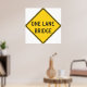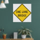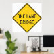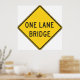 Ein einspuriges Brückenschild in schwarz auf gelb. Dieses Design sieht wirklich effektiv aus auf diesem Poster