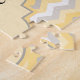 Hübsches und feminines hellbeiges Zitronengelb mit hellgrauem Zickzack Zickzack-Design, hübsches Hintergrundmuster und eleganter Rahmenform mit Initialen Monogramm. Mit diesem mit Monogramm, hellen Zickzack- Objekt zeigen Sie trendigen Geschmack. Copyright © 2012 www.CuteComfy.com