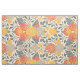 Blume und Blätter in Gelb-, Orange- und Blautönen auf cremefarbenem Hintergrund.