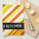 Dieses Küchentuch-Ausrüstungsbeschreibungen färben sich gelb, orange und weißen Streifen, die durch die Einstellungssonne inspiriert werden. Sie kennzeichnet auch einen individuellen Namen.