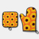 Gelb-orangefarbenes Pickleball-Paddel Ofenhandschuh & Topflappen-Set