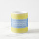 Gelb- und hellblauer Strick mit Monogramm Kaffeetasse