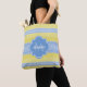 Gelb- und hellblauer Strick mit Monogramm Tasche