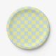 Abstrakte digitale Kunst von pastellblauen und gelben Quadraten in einer karierten Formation.
