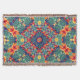 Blätterdecke mit einem abstrakten tropischen Muster in Grün, Orange, Blau und Gelb