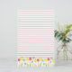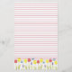 Ein hübsches Schreibpapier mit roten Linien, das mit einem Blumengarten mit Tulpenblumen geschmückt ist, der mit farbigem Bleistift gezeichnet wurde.