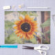 Gelbe Sonnenblume, Orange, Gartenbienen Kunsthandwerk decouptes Papiertaschentuch. Schöner Blumengarten Sommer Natur Blume. Bildrecht Marg Seregelyi Fotografie.