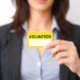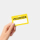 Gelber Blank-Volunteer-Markenname mit Titel in schwarz fett Sans Serif-Schriftart mit weißem Leerzeichen für Ihren Namen auf gelbem Hintergrund.