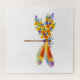 Künstlerisch bemalt, florale Libelle in kontrastierender Orange und lila mit gelben, hellen, blühenden kalifornischen Mohn und blauen Wildblumen auf weißem Hintergrund.