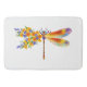 Künstlerisch bemalt, florale Libelle in kontrastierender Orange und lila mit gelben, hellen, blühenden kalifornischen Mohn und blauen Wildblumen auf weißem Hintergrund.